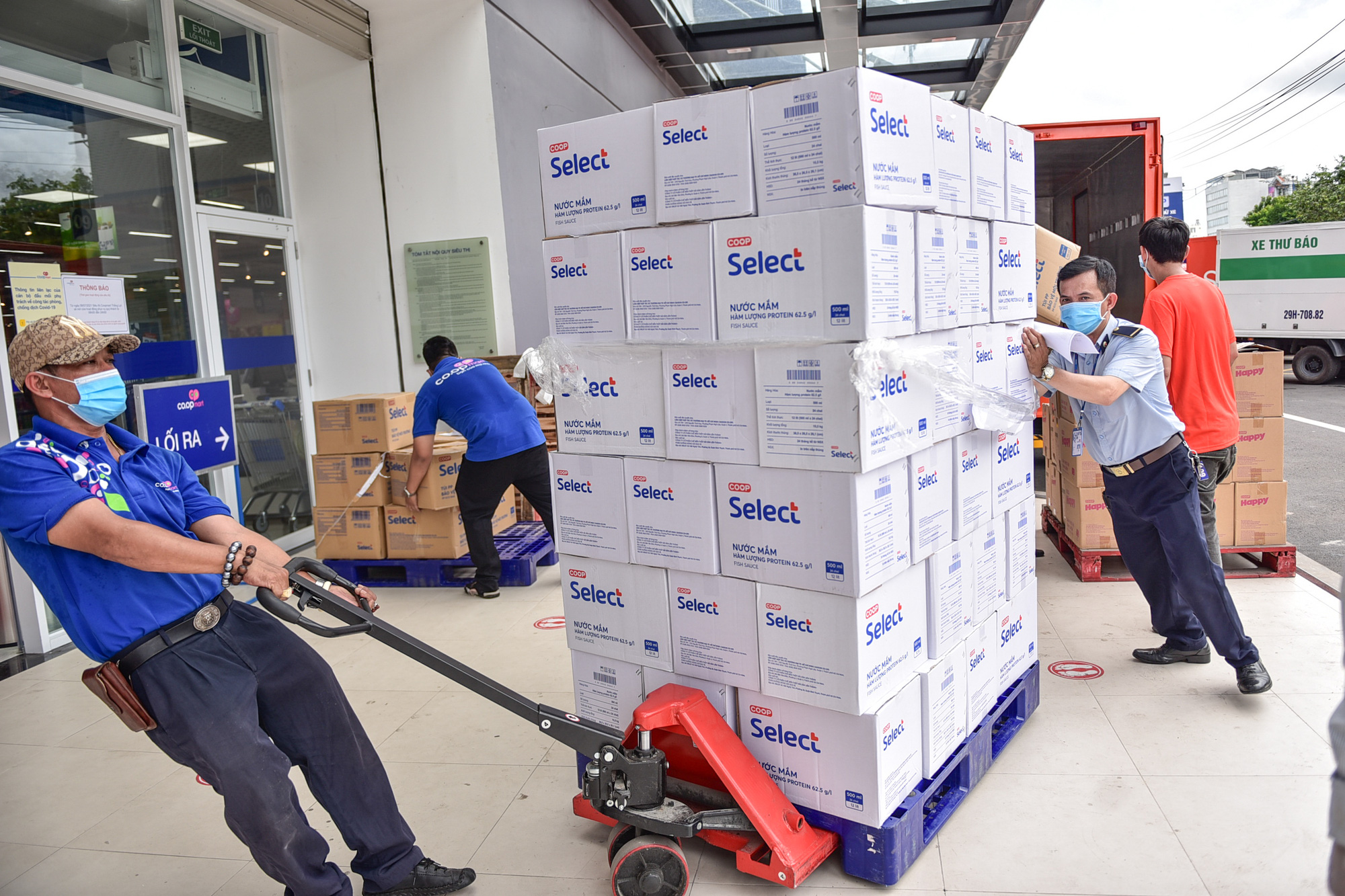 Mặc dù trong tình trạng khan hiếm hàng hóa và khó khăn vận chuyển nhưng Co.op Mart Thắng Lợi vẫn ưu tiên dành nguồn hàng cho các đơn hàng Giỏ quà nghĩa tình đã được người dân đặt mua trên Shopee - Ảnh: NGỌC PHƯỢNG