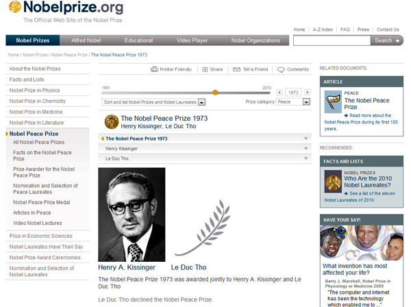 Giải Nobel hòa bình thế giới năm 1973 chắc chắn sẽ trao cho những người đã “đánh nhau” trên bàn đàm phán Paris này. Nhưng trao cho ai: Lê Đức Thọ, hay Kissinger…? Cuối cùng Hội đồng chuyên gia của giải thưởng danh giá nhất thế giới này đã chọn cả hai.
